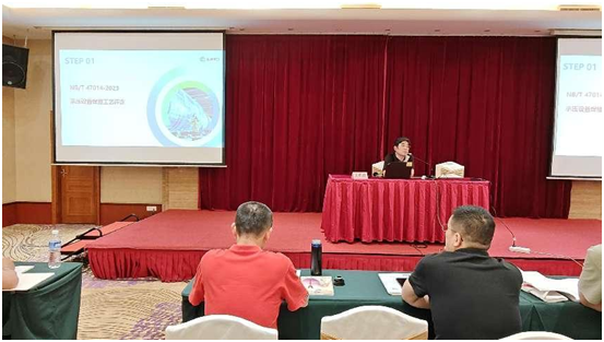 培训第二部分由协会理事长单位,上海锅炉厂有限公司的副总工程师王炯祥老师授课。王老师对NB/T 47014—2023《承压设备焊接工艺评定》、NB/T 47015—2023《压力容器焊接规程》、NB/T 47016—2023《承压设备产品焊接试件的力学性能试验》等标准文件进行了详细解读和宣贯。作为标准的起草人之一,王老师从新标准的主要技术变化、新标准修订后的重要关注点等方面做了详细全面的讲解,并从锅炉制造单位的角度进一步解读了锅炉焊接工艺文件的编制要求、注意事项等内容。