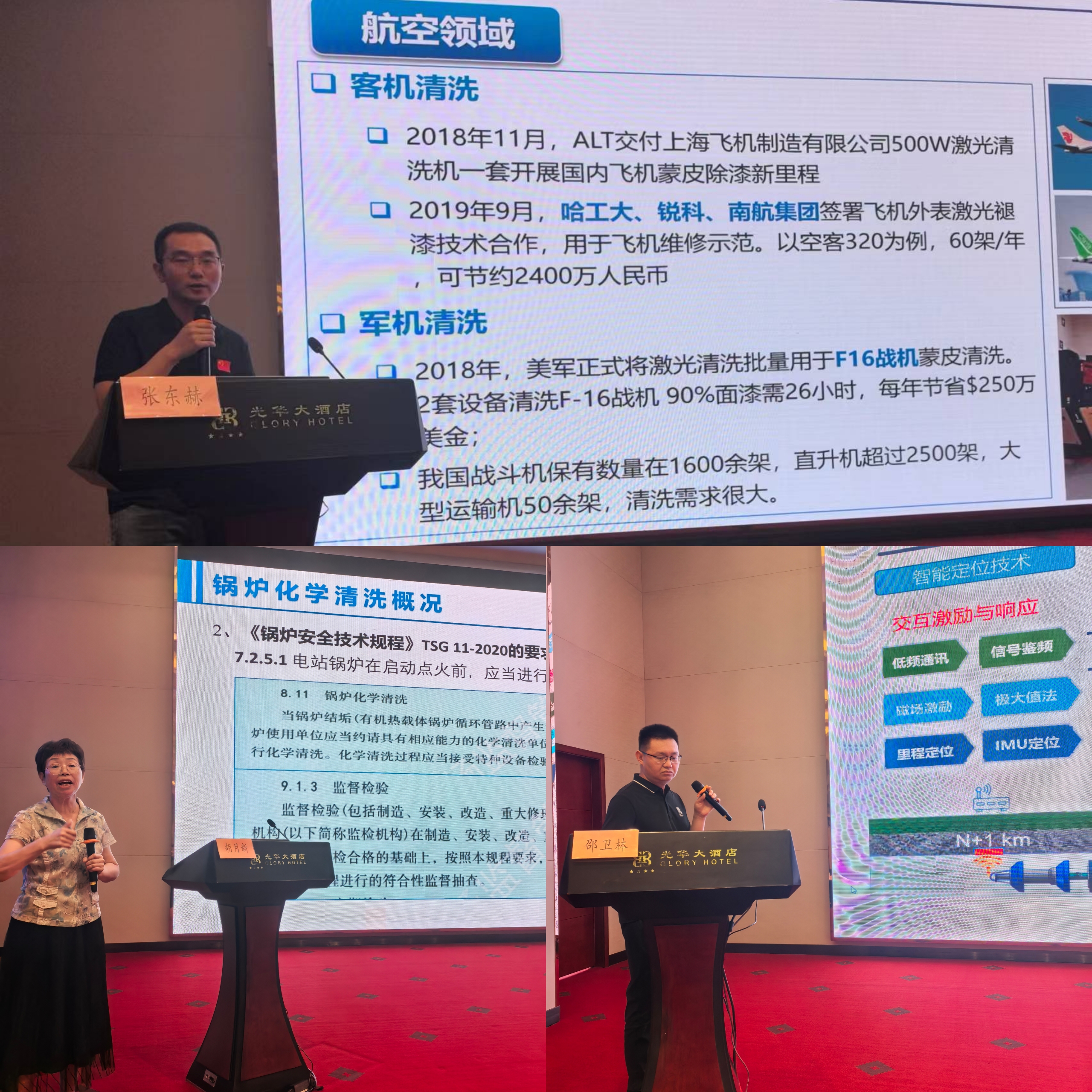 协会特邀专家哈尔滨工业大学激光制造研究中心张东赫博士做主题为“激光清洗技术研究进展及挑战”的报告,介绍了激光清洗在微电子、模具、建筑和航空航天等领域的示范应用。未来,激光清洗是石化行业实现提质增效,减排节能,由传统清洗方式向新型清洗方式转变的理想手段。