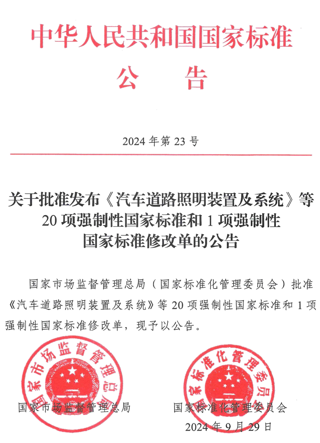 | 1 | GB 4599-2024 | 汽车道路照明装置及系统 | 2025/7/1 |