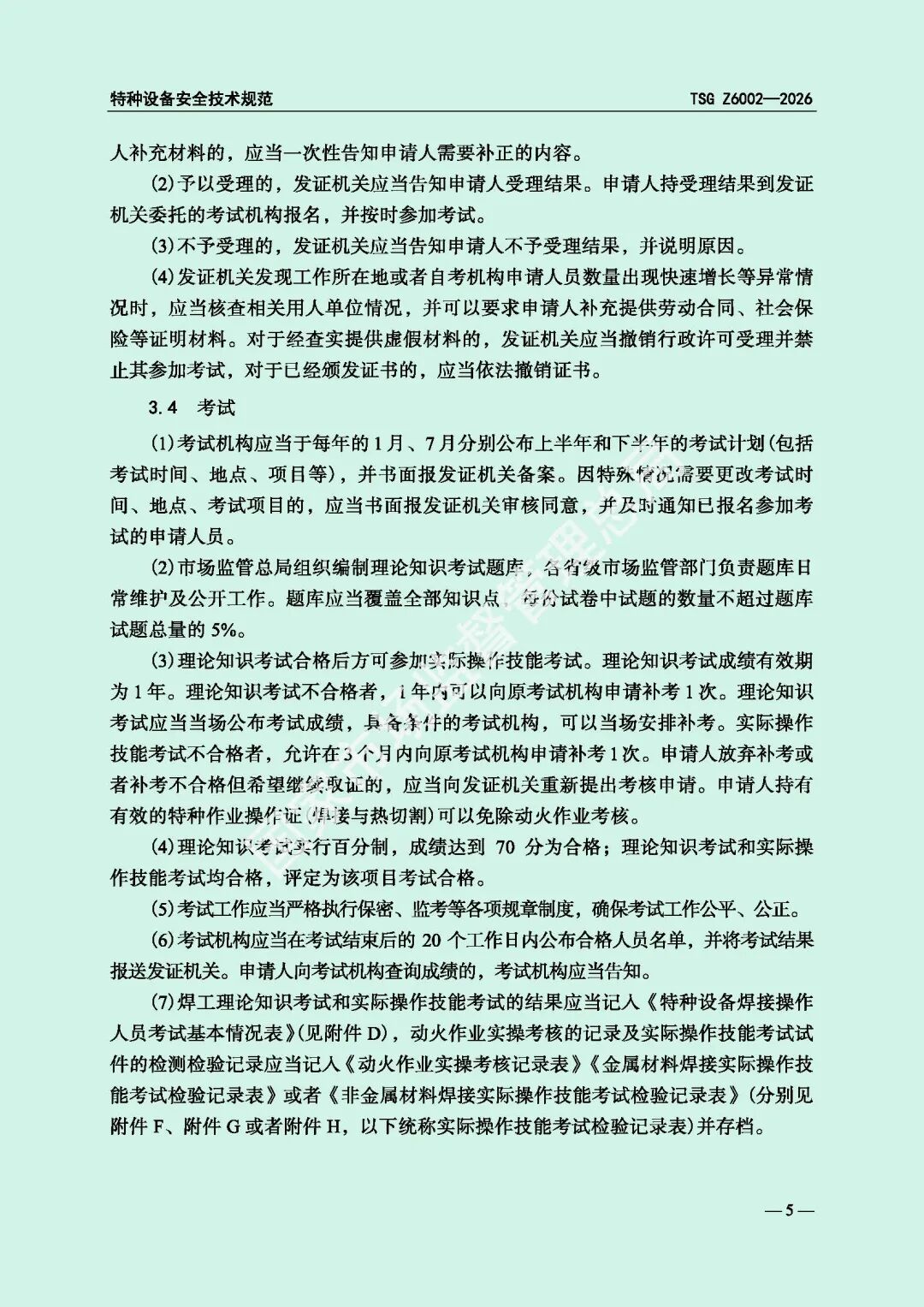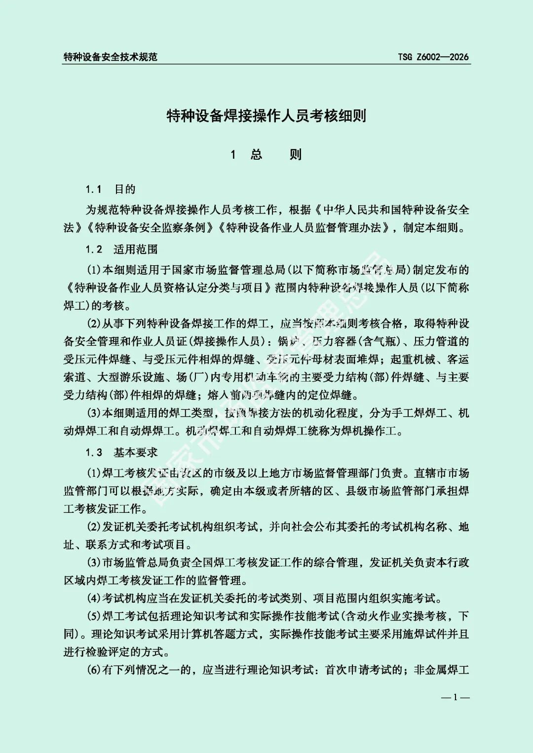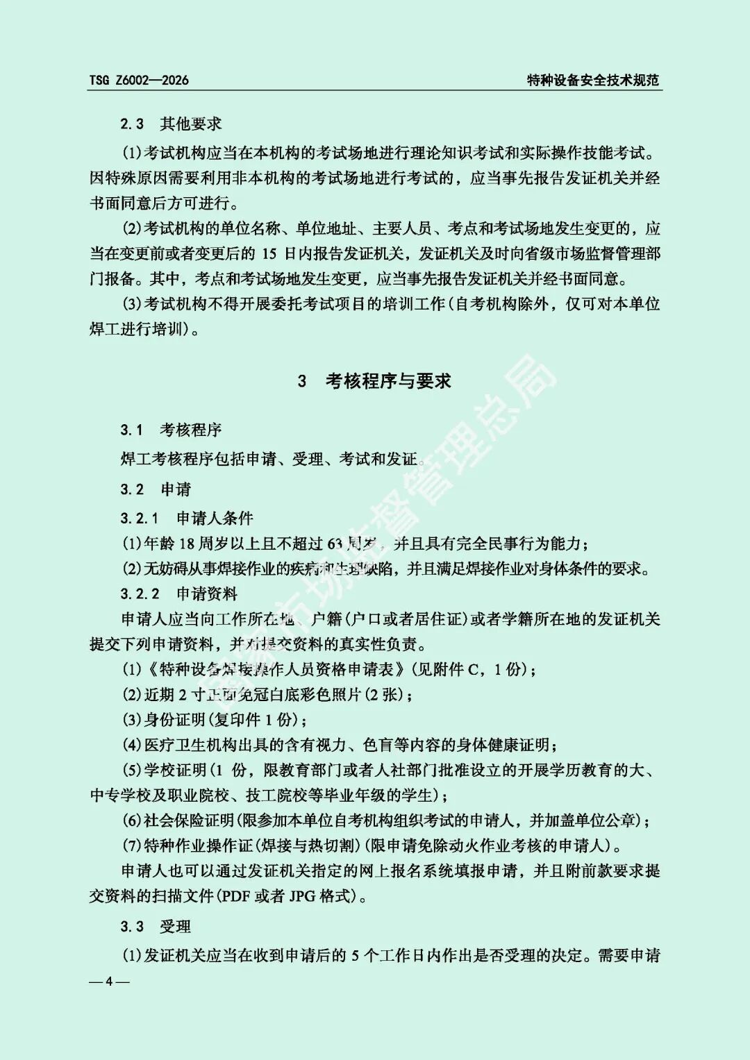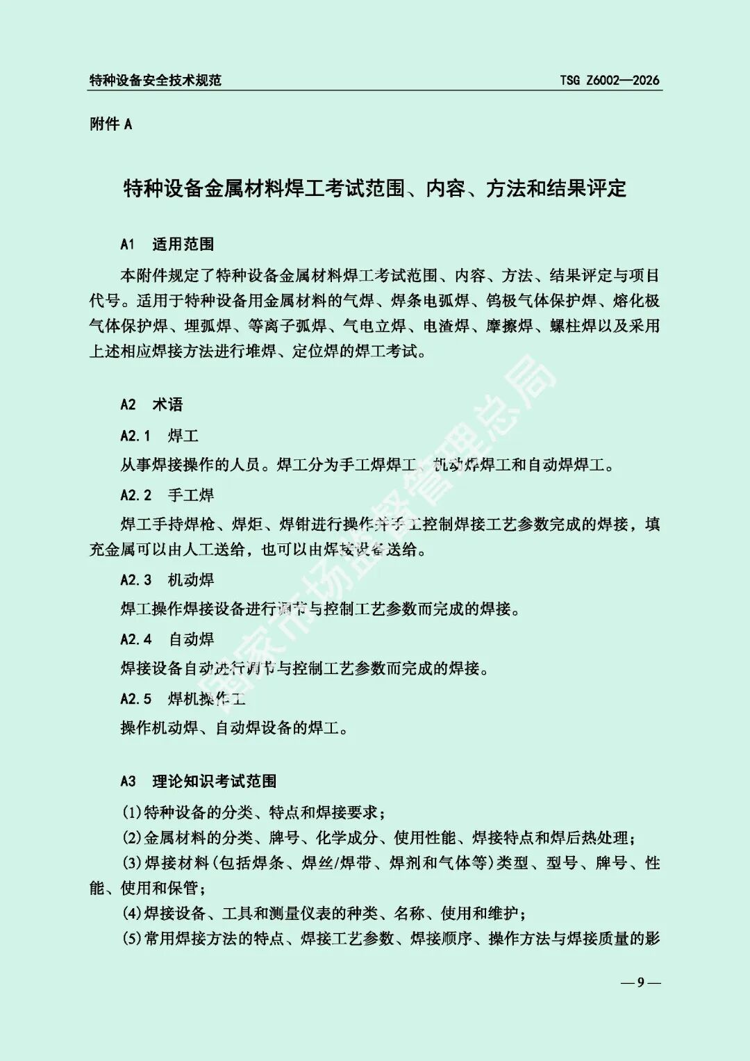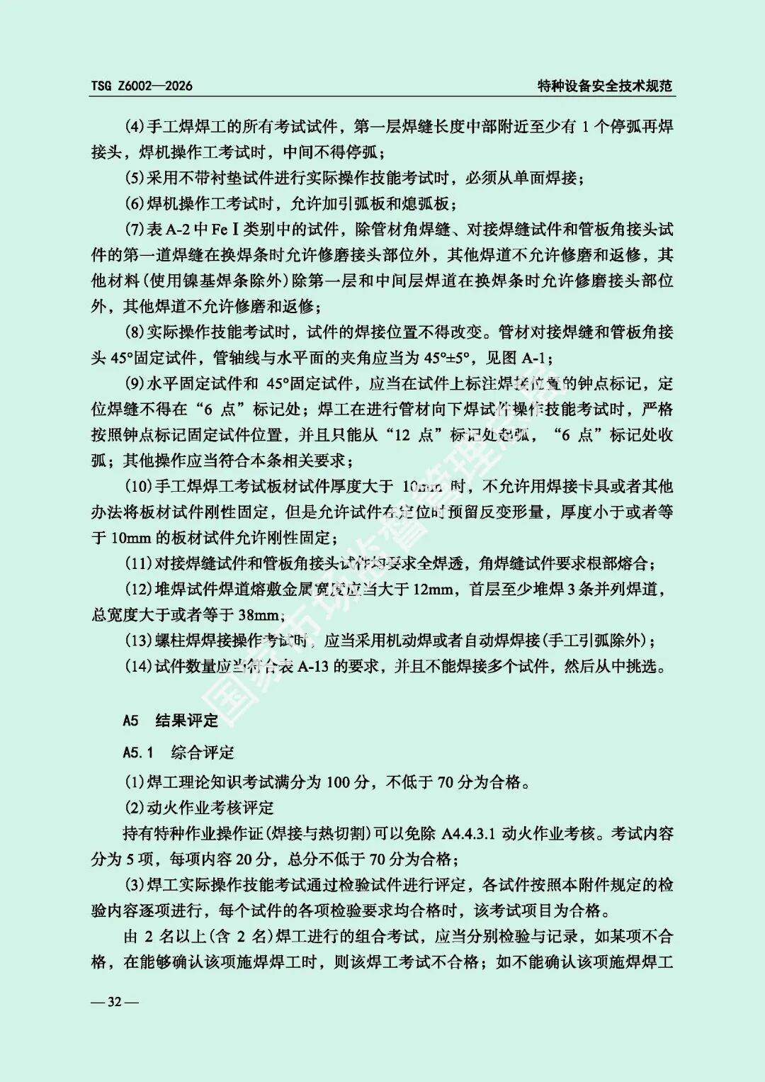为进一步规范特种设备焊接操作人员考核工作,提高特种设备质量安全水平,市场监管总局对《特种设备焊接操作人员考核细则》(TSG Z6002-2010)进行了修订,现予以发布,自2026年8月1日起施行。