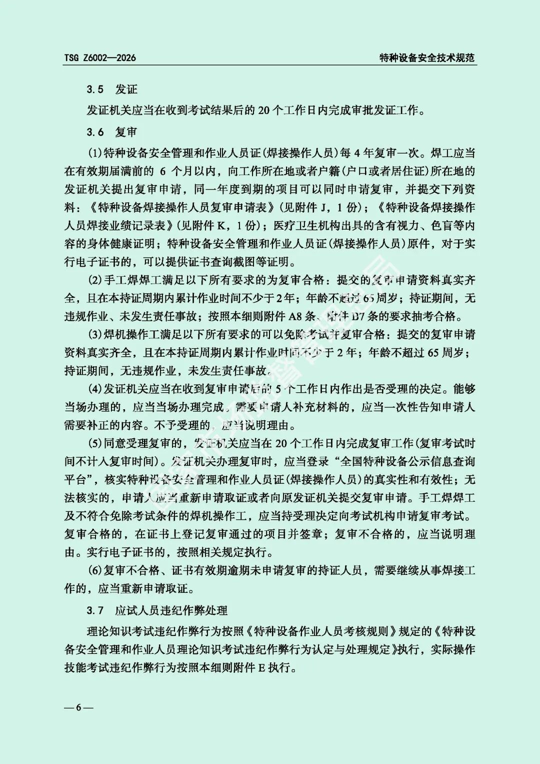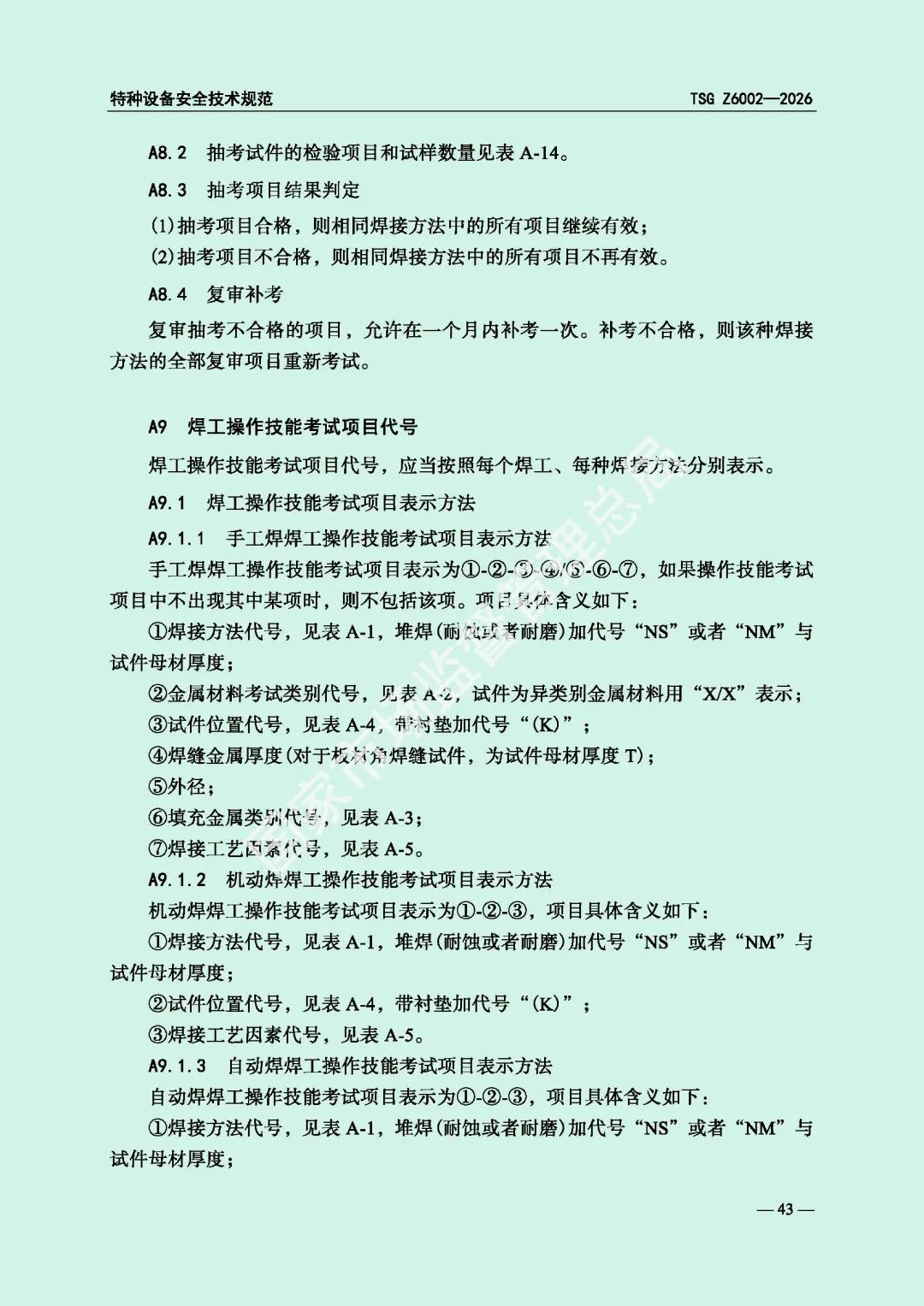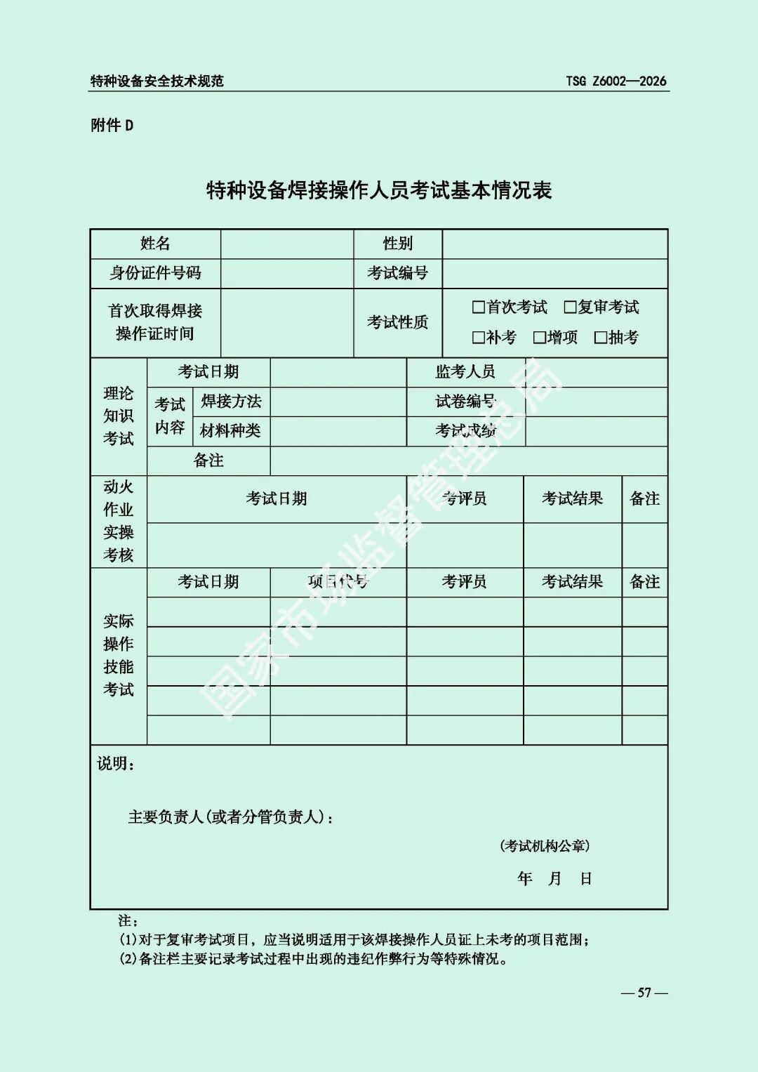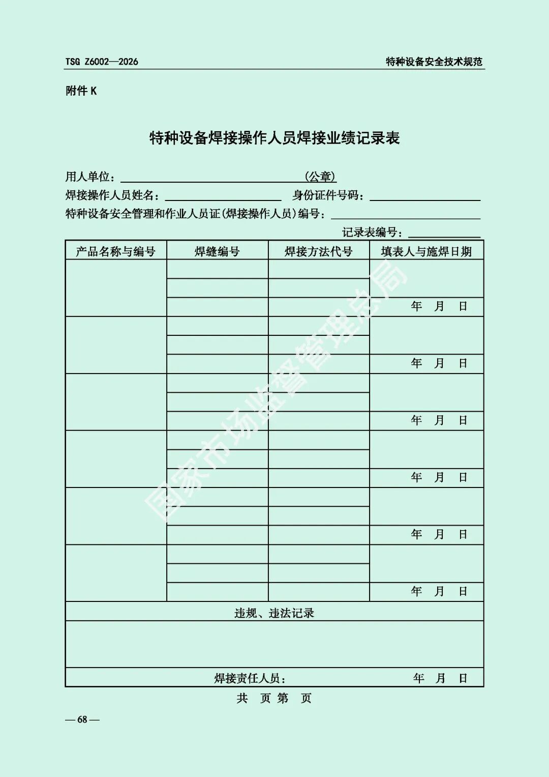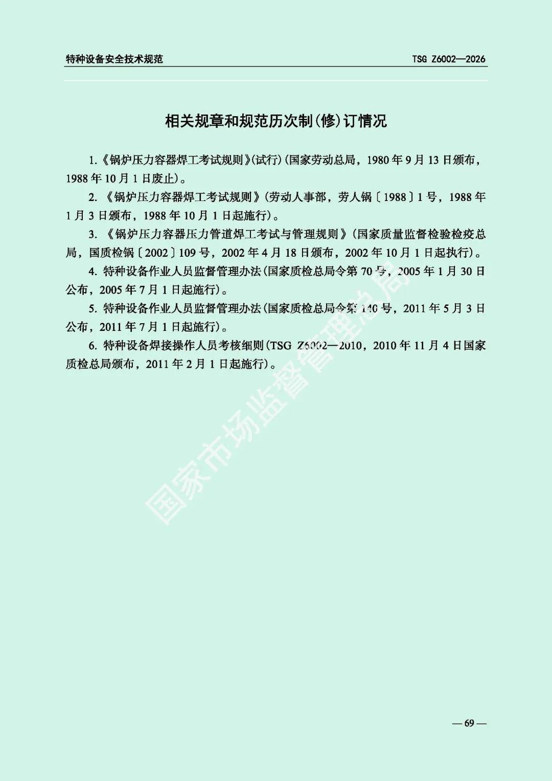 为进一步规范特种设备焊接操作人员考核工作,提高特种设备质量安全水平,市场监管总局对《特种设备焊接操作人员考核细则》(TSG Z6002-2010)进行了修订,现予以发布,自2026年8月1日起施行。