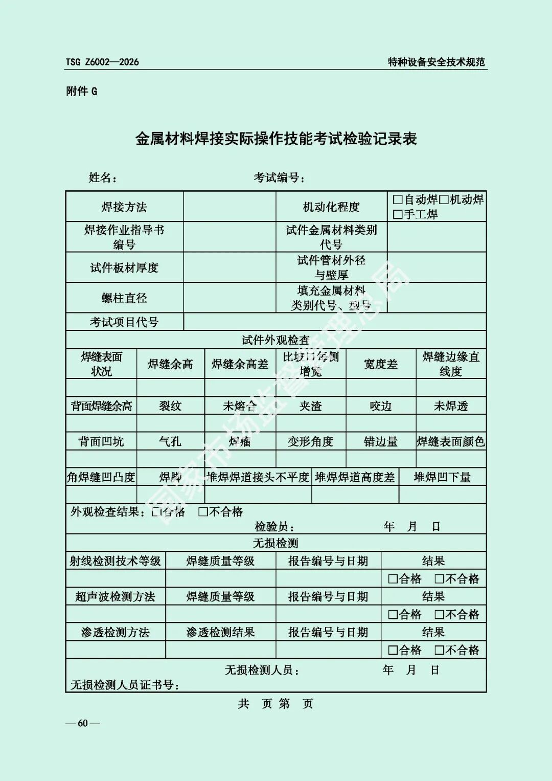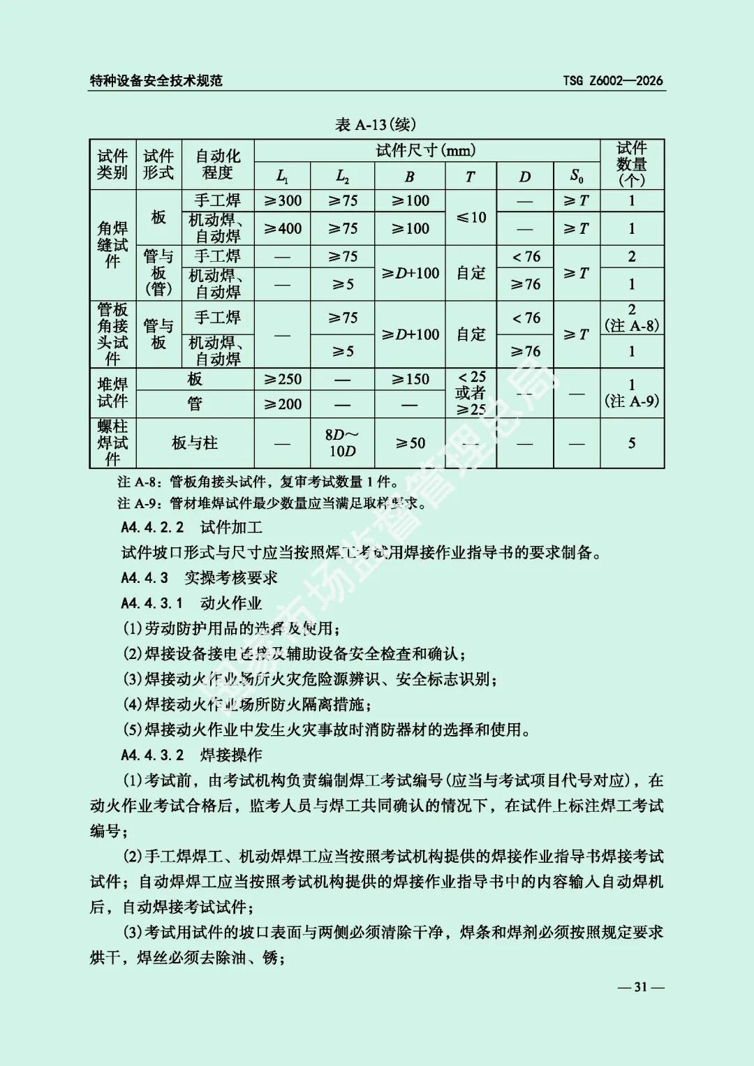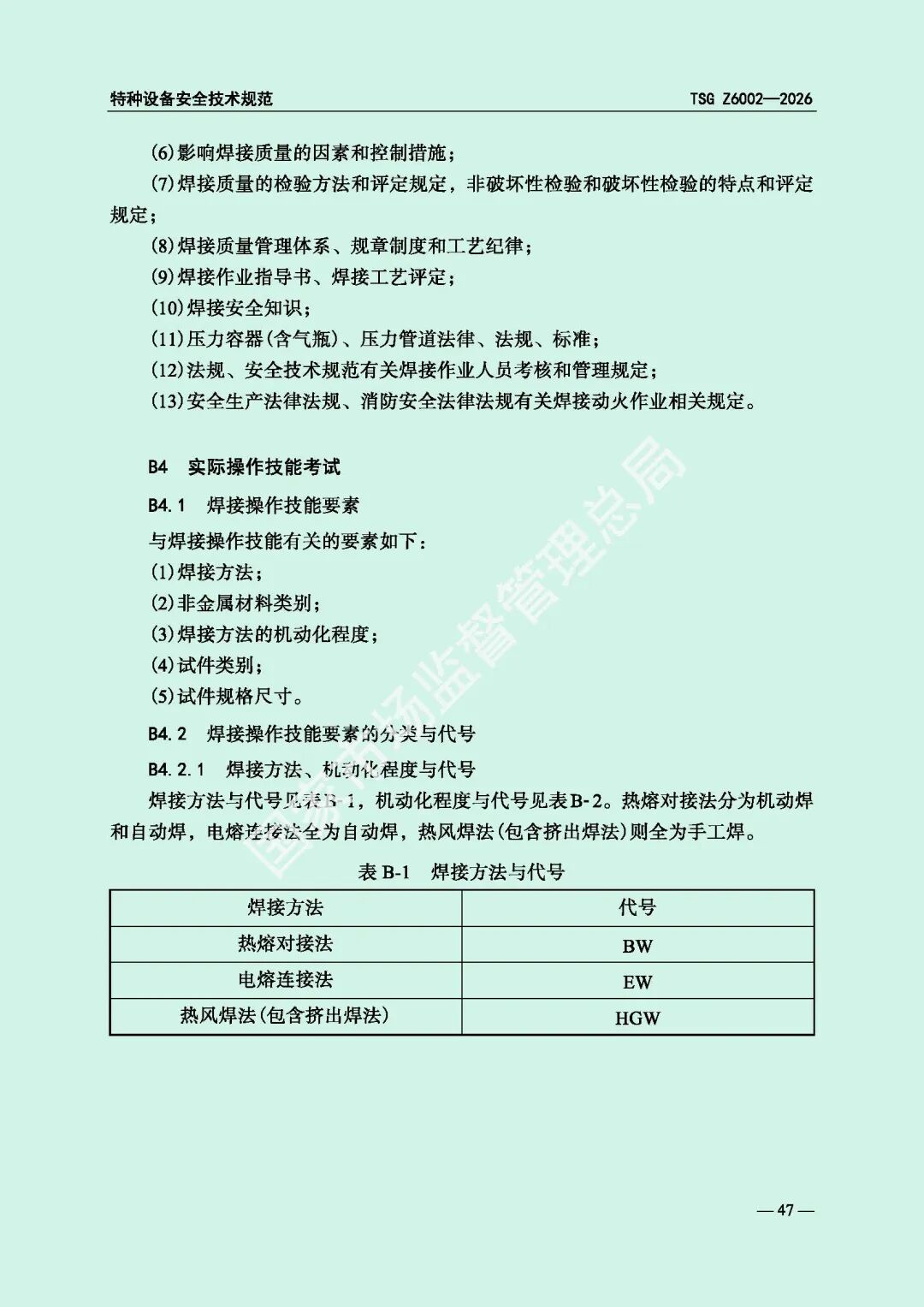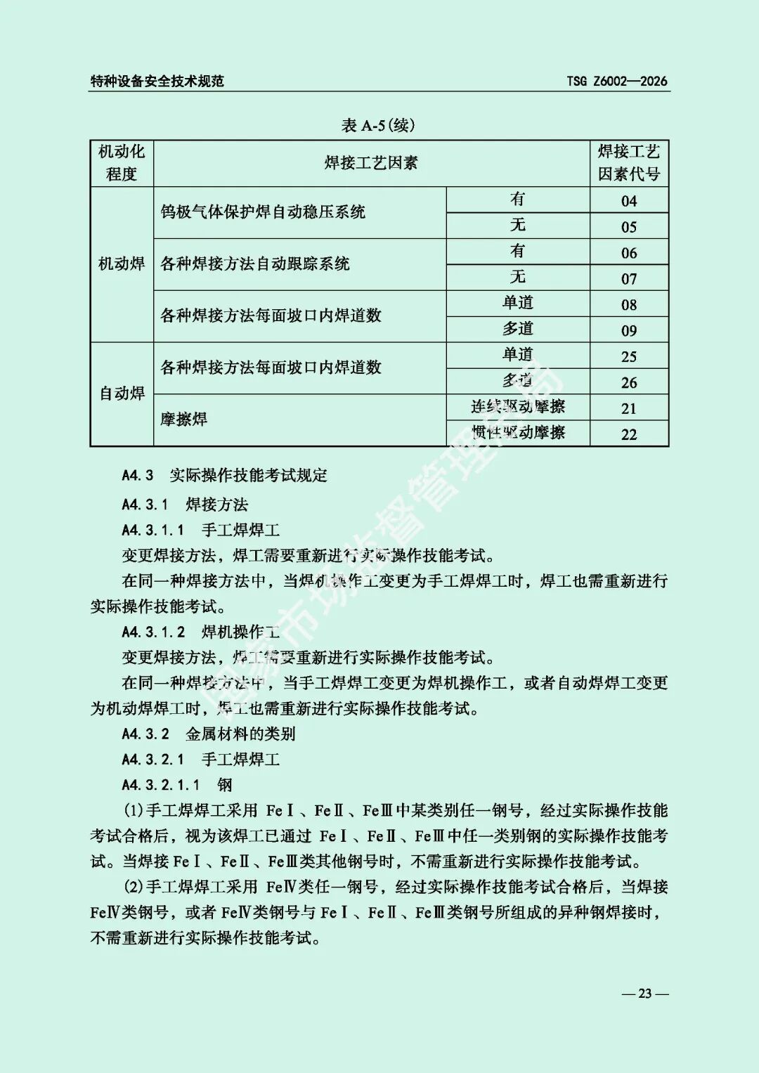 为进一步规范特种设备焊接操作人员考核工作,提高特种设备质量安全水平,市场监管总局对《特种设备焊接操作人员考核细则》(TSG Z6002-2010)进行了修订,现予以发布,自2026年8月1日起施行。