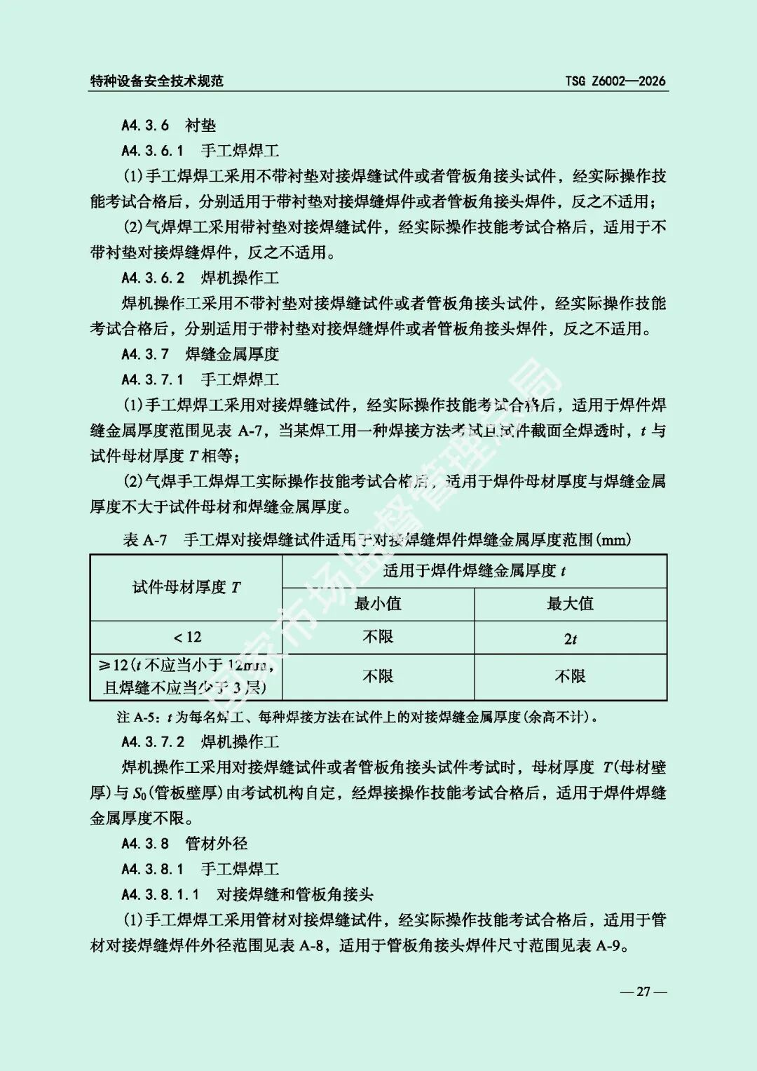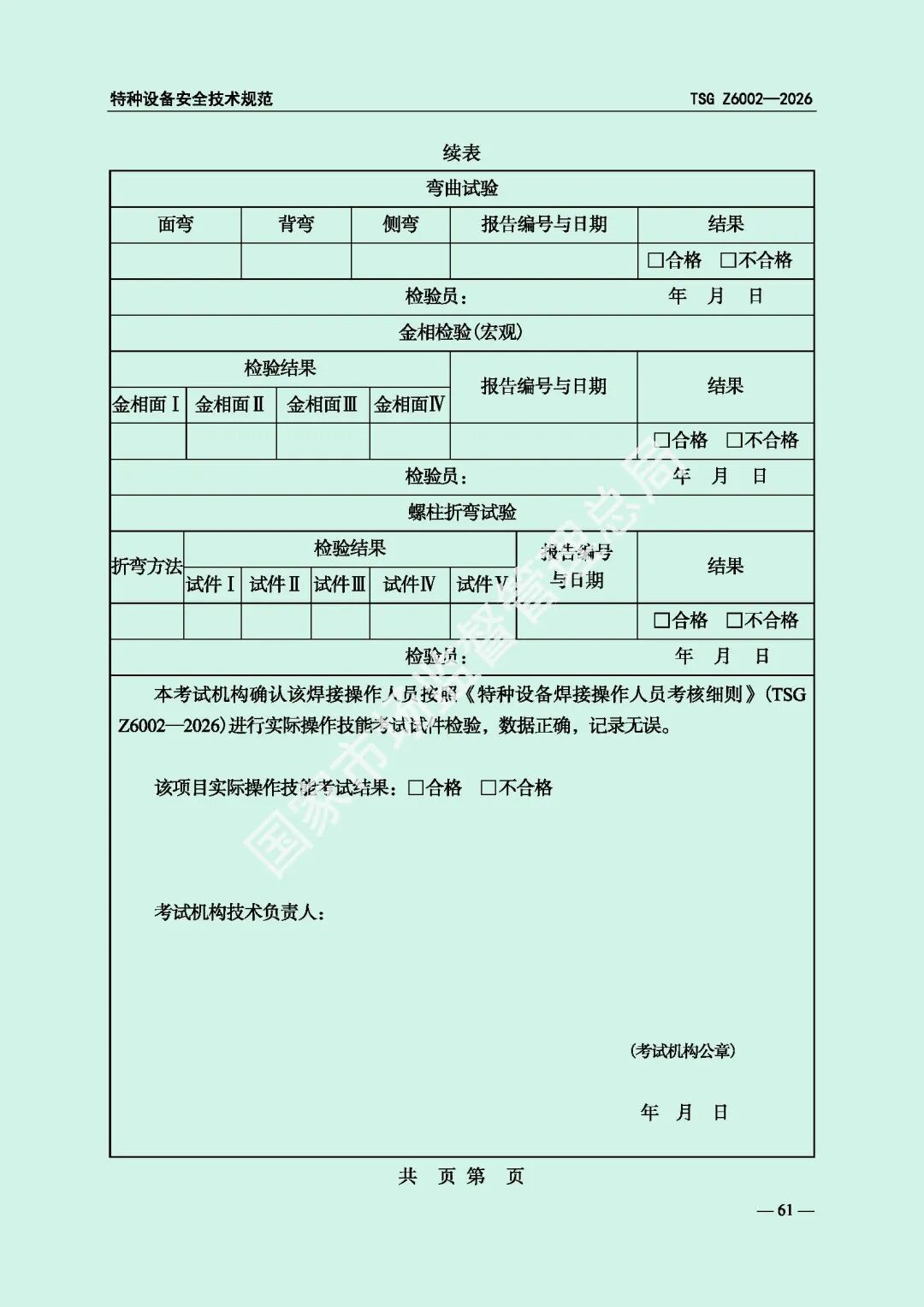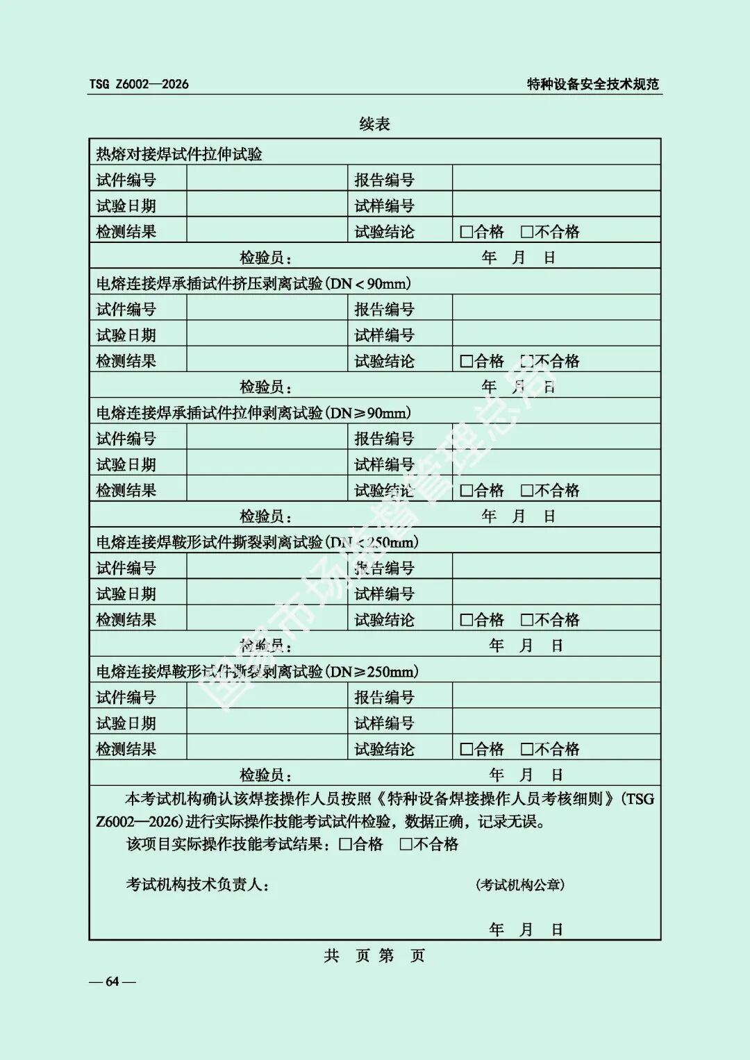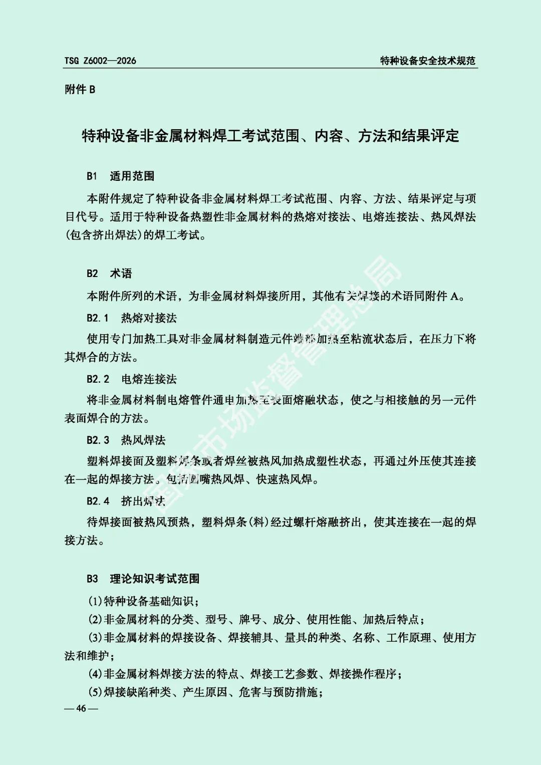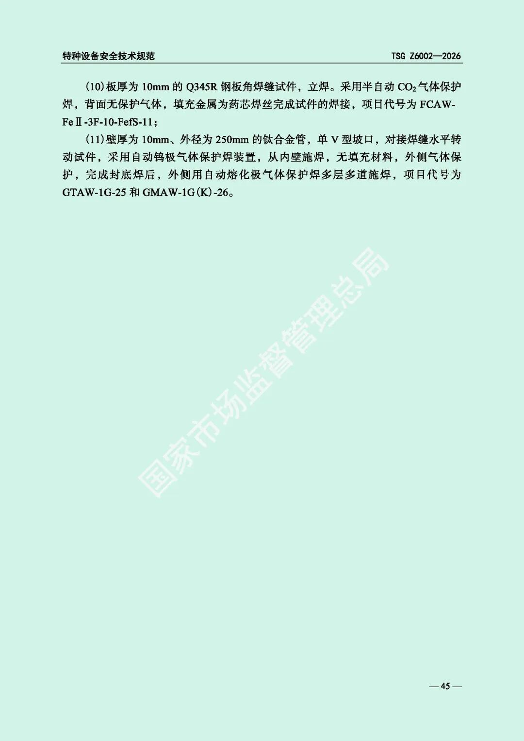 为进一步规范特种设备焊接操作人员考核工作,提高特种设备质量安全水平,市场监管总局对《特种设备焊接操作人员考核细则》(TSG Z6002-2010)进行了修订,现予以发布,自2026年8月1日起施行。