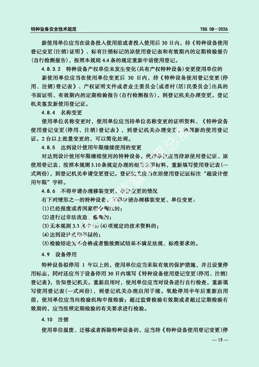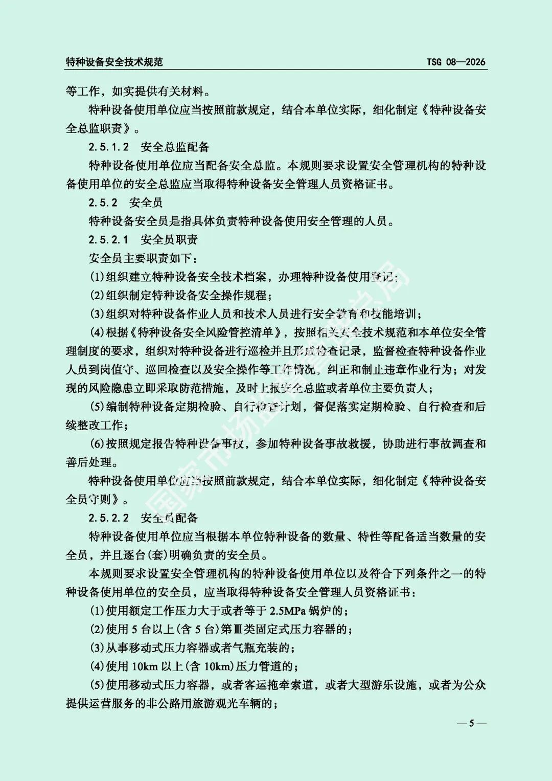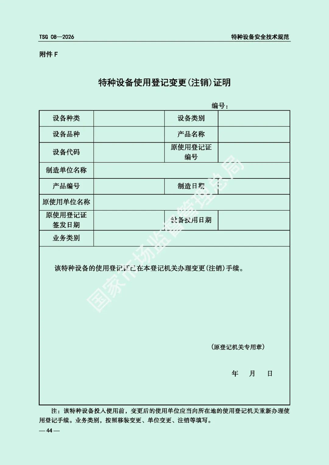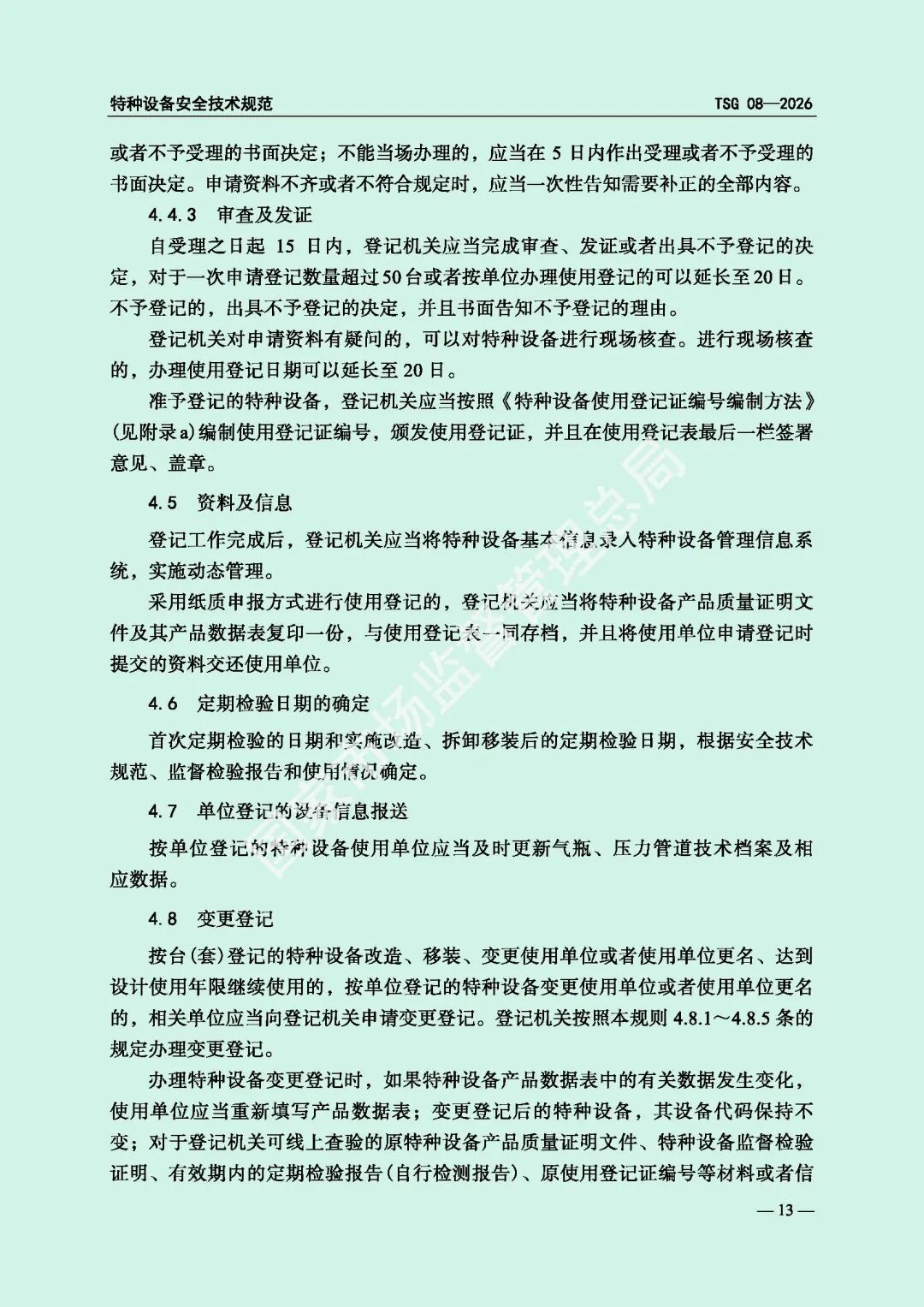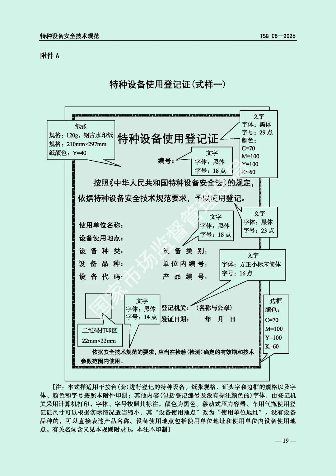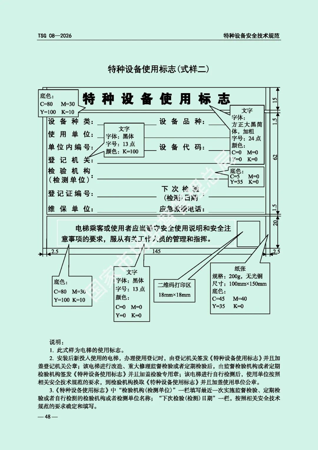 为贯彻落实《特种设备使用单位落实使用安全主体责任监督管理规定》(国家市场监督管理总局令第74号),进一步加强特种设备使用单位监管,市场监管总局对《特种设备使用管理规则》(TSG08-2017)进行了修订,现予以发布,自2026年5月1日起施行。