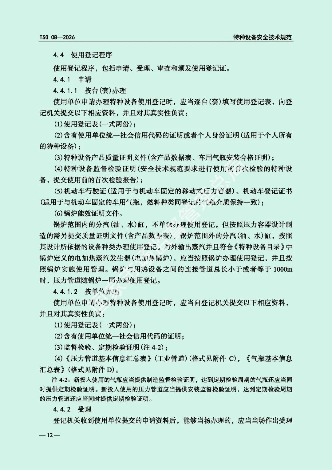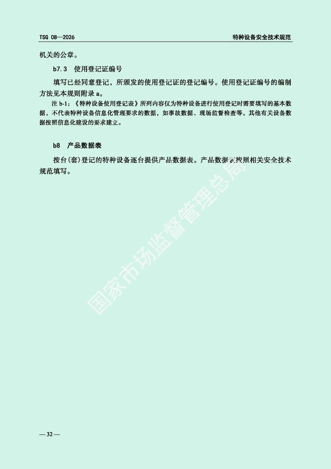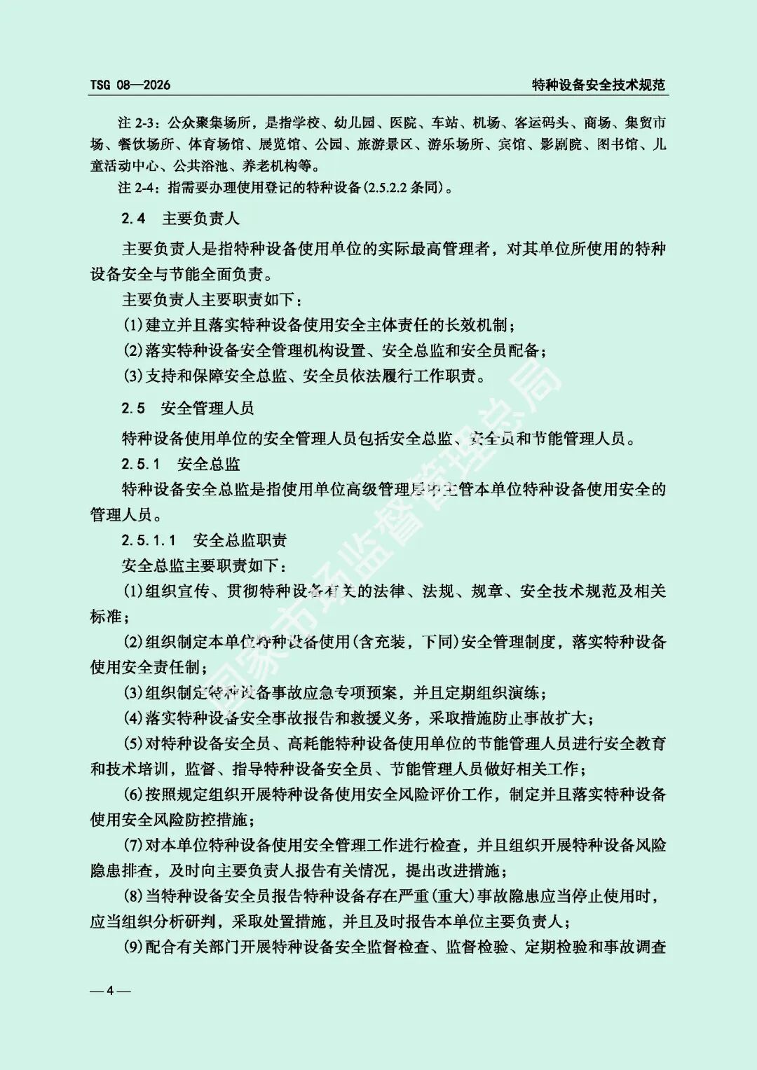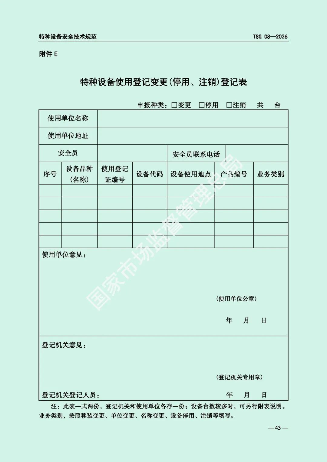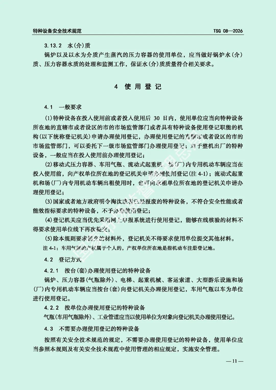 为贯彻落实《特种设备使用单位落实使用安全主体责任监督管理规定》(国家市场监督管理总局令第74号),进一步加强特种设备使用单位监管,市场监管总局对《特种设备使用管理规则》(TSG08-2017)进行了修订,现予以发布,自2026年5月1日起施行。