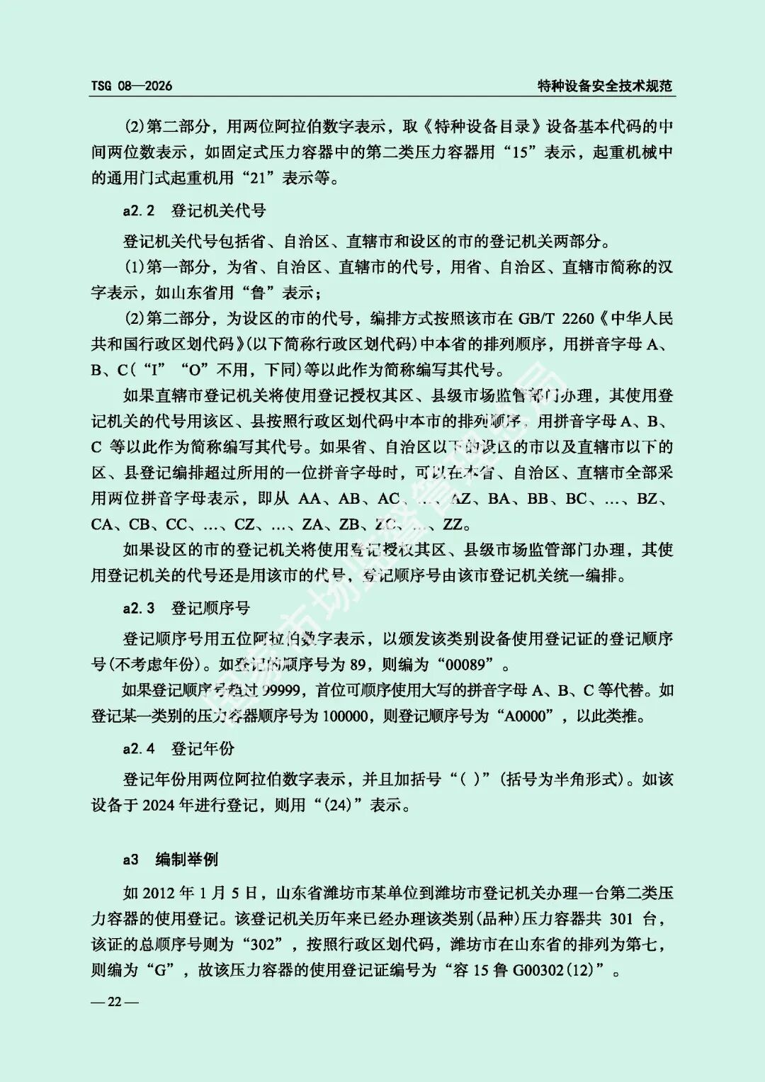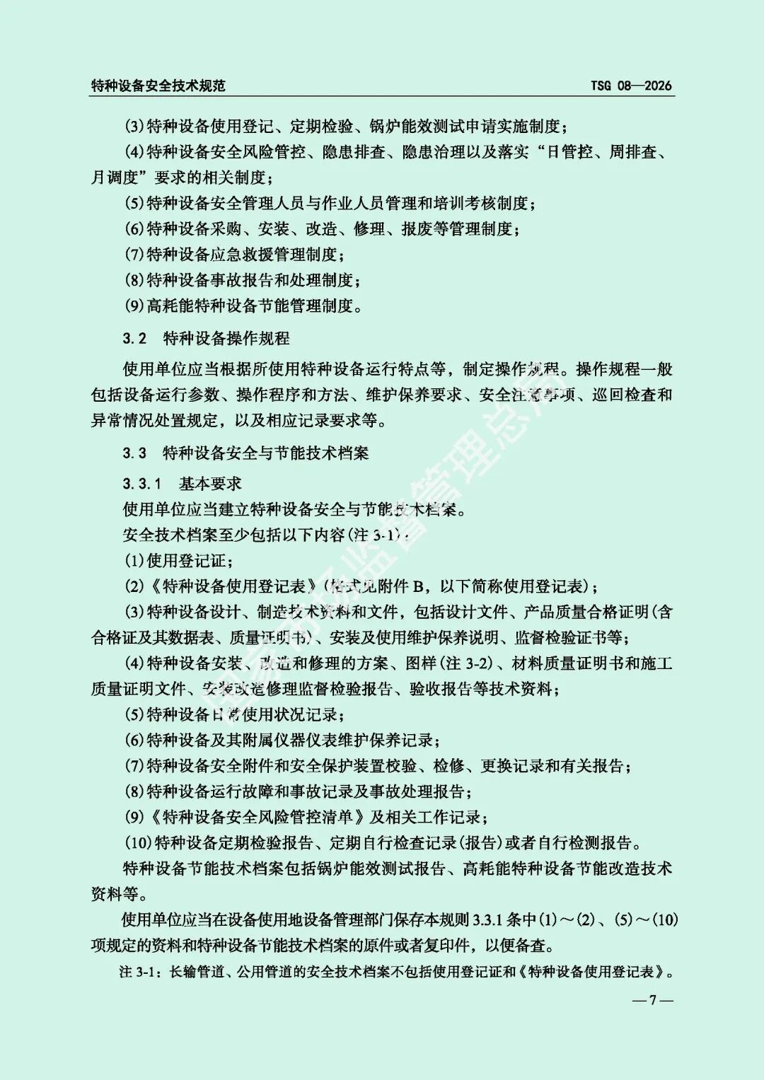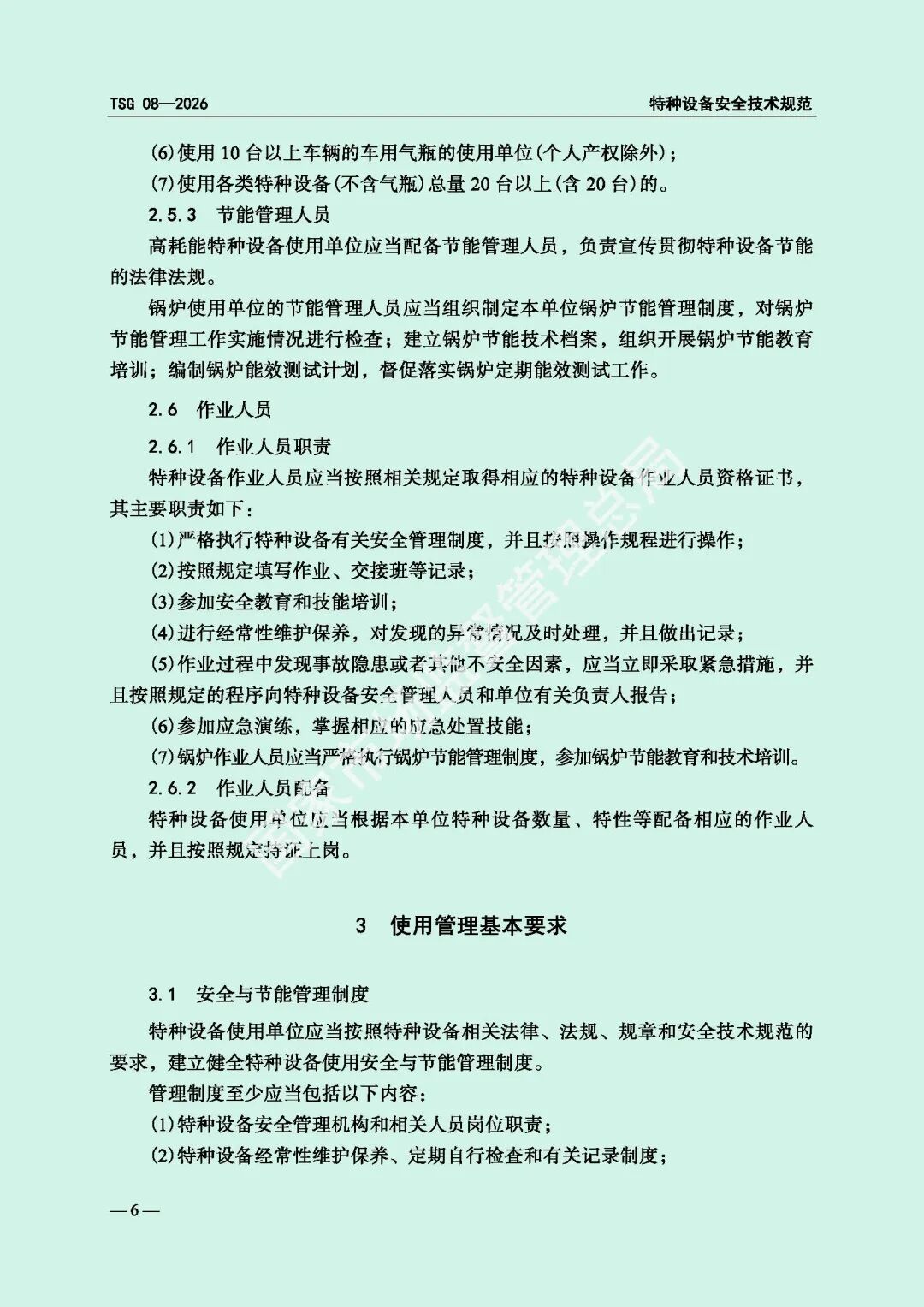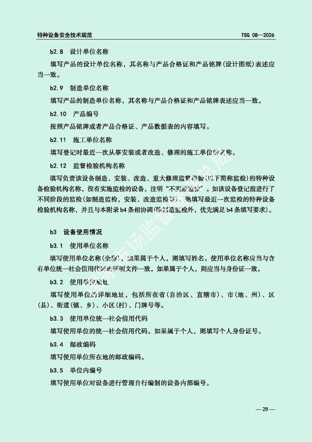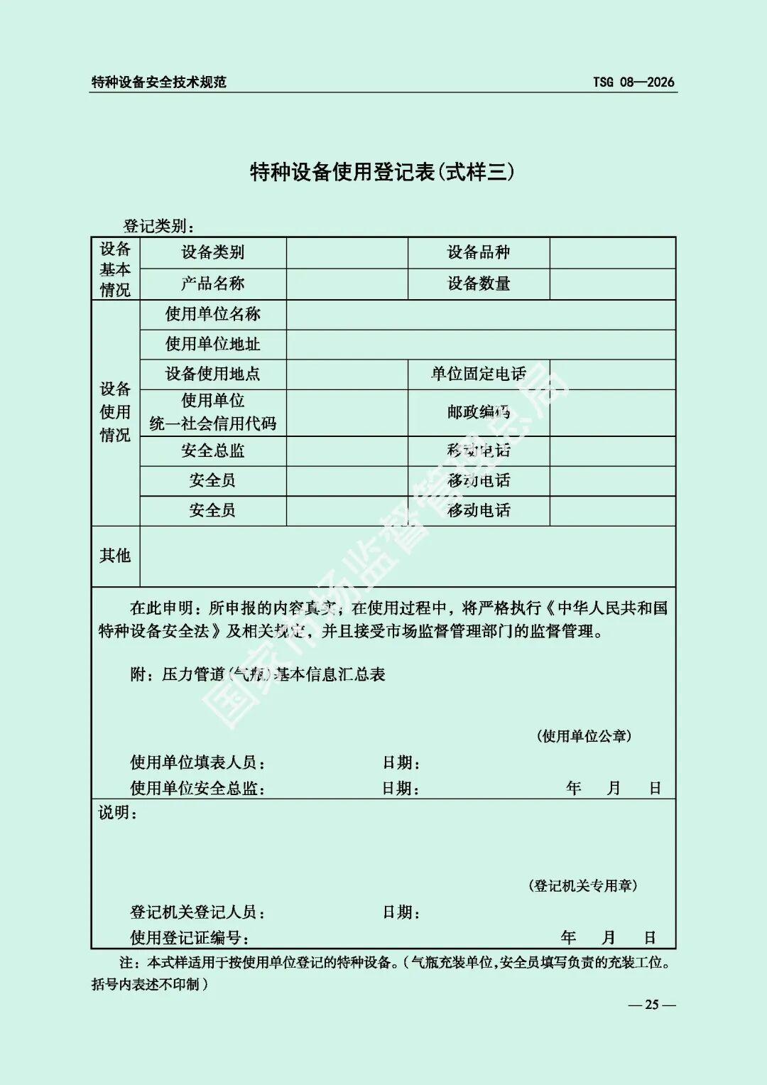 为贯彻落实《特种设备使用单位落实使用安全主体责任监督管理规定》(国家市场监督管理总局令第74号),进一步加强特种设备使用单位监管,市场监管总局对《特种设备使用管理规则》(TSG08-2017)进行了修订,现予以发布,自2026年5月1日起施行。