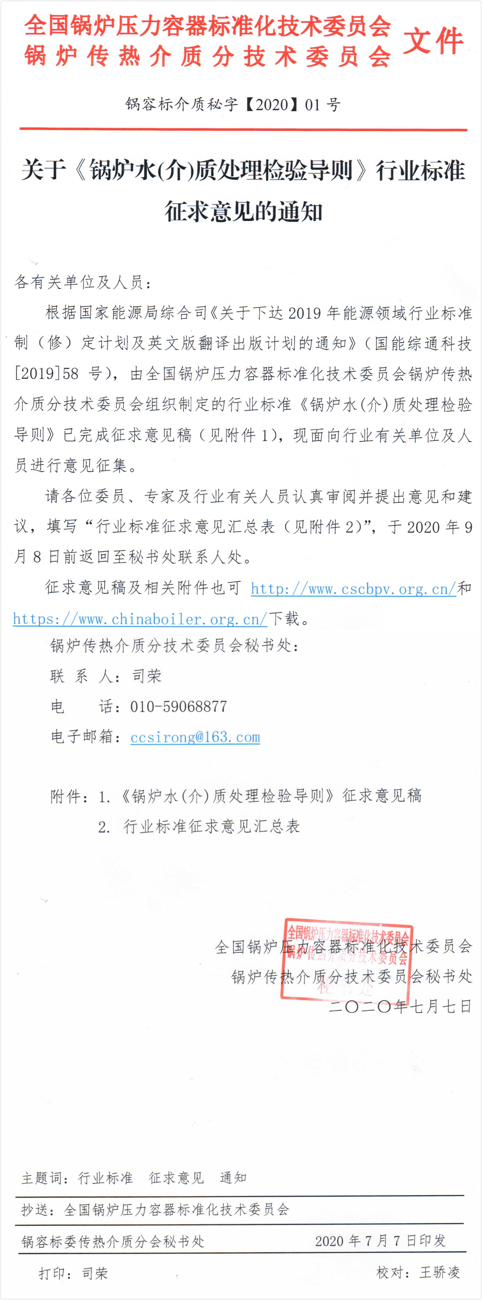 关于《锅炉水(介)质处理检验导则》行业标准征求意见的通知.pdf