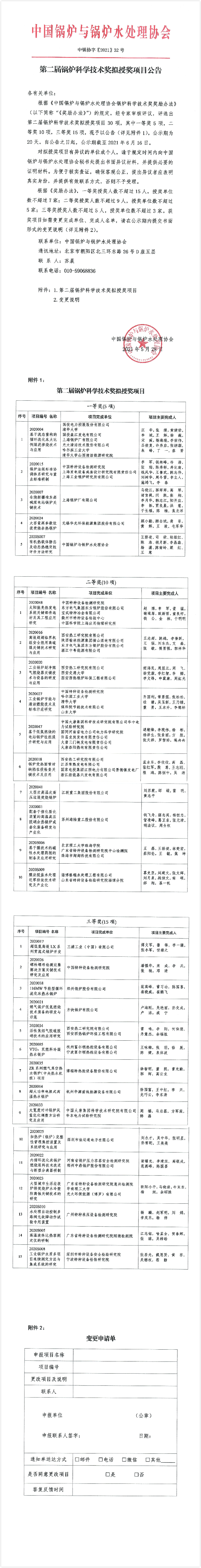 第二届锅炉科学技术奖拟授奖项目公告